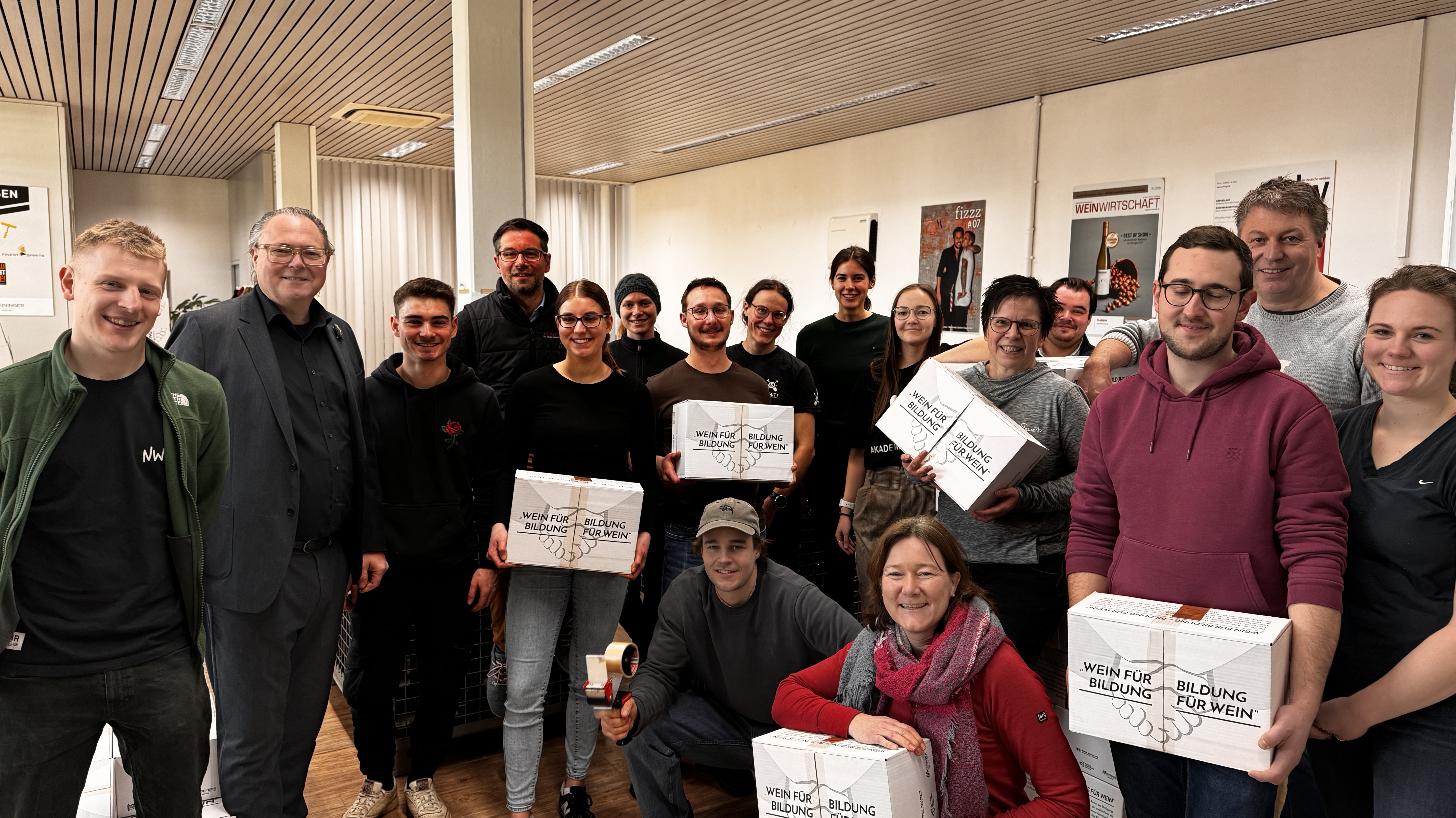Der Geisenheimer Alumniverband packt in dieser Woche gemeinsam mit Geisenheimer Studierenden über 1.000 der beliebten der 6er-Überraschungsweinkartons. Ab Samstag 24. Februar 2024 können Weinliebhaberinnen und -liebhaber sie unter www.geisenheimweh-shop.de erwerben. Mit ihrem Kauf unterstützen sie insbesondere das Daniel-Meininger-Scholarship und tragen zur Finanzierung von Deutschlandstipendien für Studierende der Hochschule Geisenheim bei.