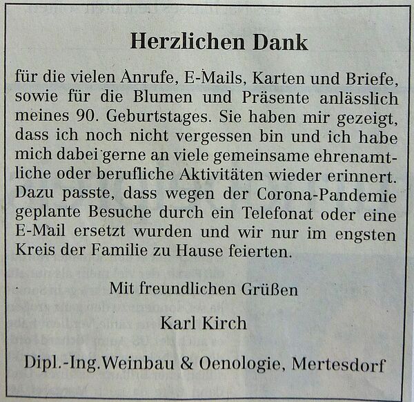 Am 21.09. feierte unser Alumnus Dipl.-Ing. Karl Kirch aus Mertesdorf seinen 90. Geburtstag.