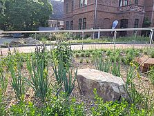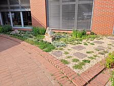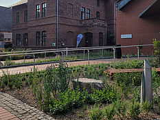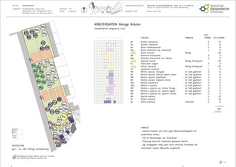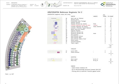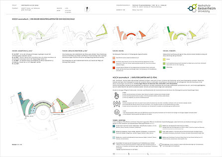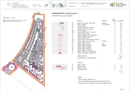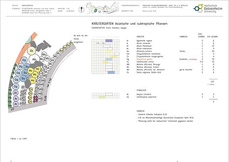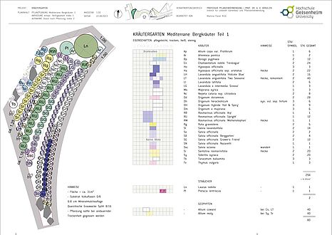 In den verfügbaren Pflanzflächen sind mehrjährige Kräuter thematisch angeordnet. Pflanzen mit ähnlichen Herkunftsgebieten, Standortbedingungen, sowie Sortimente verschiedener Gattungen und Arten sind zu einer repräsentativen Pflanzung kombiniert, dessen Formsprache sich an der Architektur des Campusgebäudes anlehnt. Die Auswahl besteht überwiegend aus Pflanzen heißer, trockener Regionen wie beispielsweise dem Mittelmeerraum.