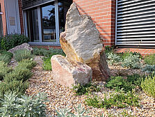 Das liegt in erster Linie daran, dass es sich bei dem Kräutergarten gar nicht um einen Schottergarten handelt. Es ist eine Bepflanzung mit über 70 verschiedenen Pflanzenarten, die in einem nachhaltigen Pflanzbeet sitzen und sich dort entwickeln. Zu Beginn mag dies recht erschreckend aussehen, da der Schotter - in der Fachsprache "Mineralmulch" genannt - noch so präsent ist. Mit der Zeit werden sich die Pflanzen jedoch so weit entwickelt haben, dass der Untergrund kaum noch zu sehen ist. Warum also der ganze Schotter?