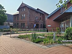 Im Zentrum des nördlichen Campus befindet sich das Campusgebäude. Neben der Mensa finden in wichtigen Räumen viele Tagungen und Veranstaltungen statt. Daher ist es wichtig, dass die Grünflächen des Eingangsbereichs eine besondere Bepflanzung erhalten. Als Reminiszenz an den ursprünglichen Kräutergarten vor den Gewächshäusern ist hier Anfang des Jahres 2023 ein Kräuter-Schaugarten entstanden. Er zeigt über 70 verschiedene Pflanzenarten und deren Sorten.