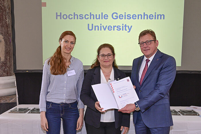 Am 04.09.2018 überreichte Staatssekretär Dr. Wolfgang Dippel, Hessisches Ministerium für Soziales und Integration, weiteren 39 hessischen Unternehmen, die sich zu einer pflegesensiblen Personalpolitik bekennen, die Charta zur Vereinbarkeit von Beruf und Pflege - und die Hochschule Geisenheim zählt dazu.