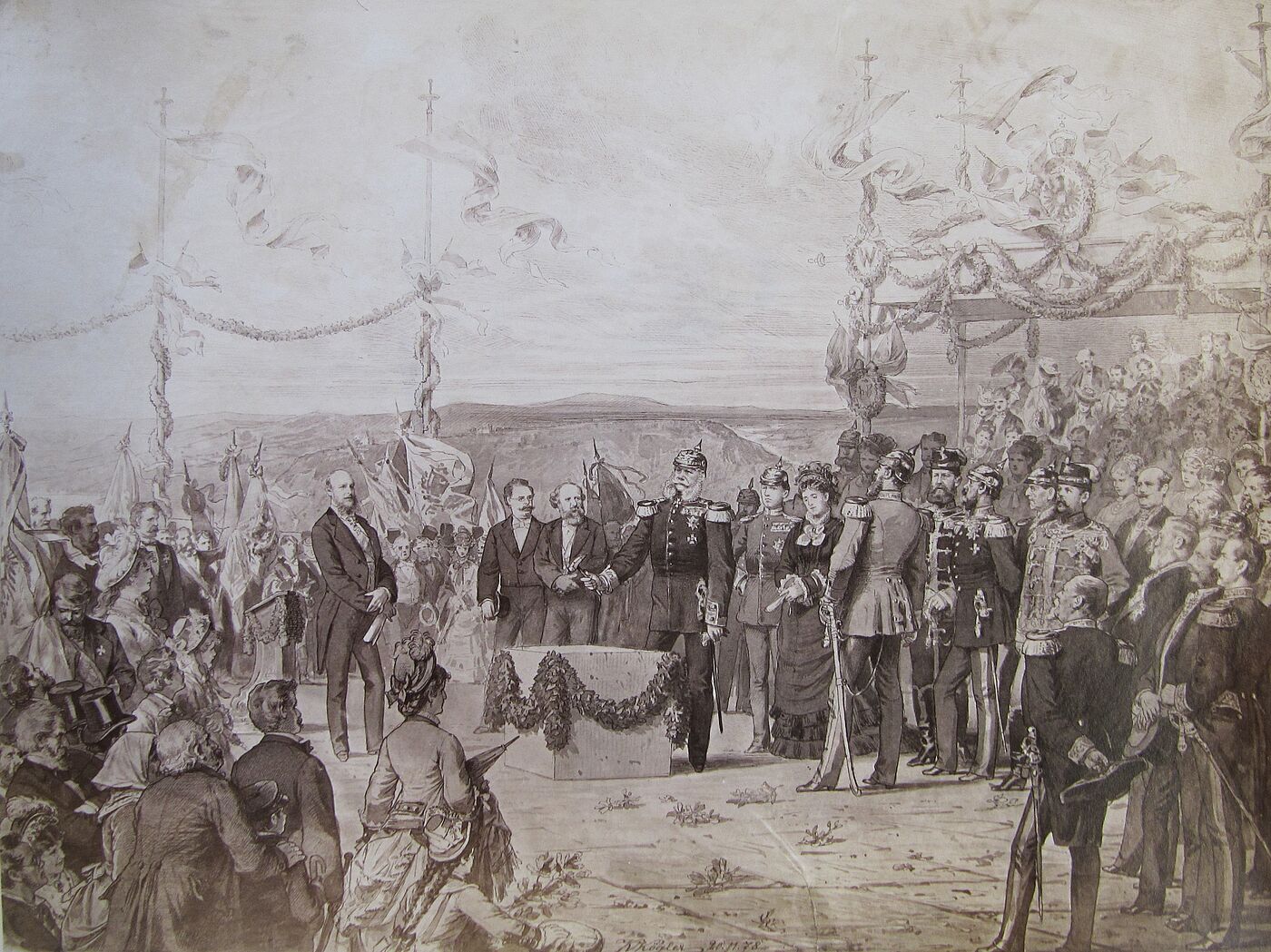 Nachdem Ferdinand Hey‘l im Jahr 1871 den Rüdesheimer Niederwald als Platz für ein neues Nationaldenkmal vorgeschlagen hatte, wurde Lade zu einem der aktivsten Unterstützer dieses Projektes. Als Mitglied des „geschäftsführenden Ausschuss“ nahm er an zahlreichen Besprechungen teil und kümmerte sich zunächst vor allem um die Gewinnung von Spenden. 1874 besichtigte Kaiser Wilhelm I. den Niederwald und war dabei auch zu Gast in Lades Villa Monrepos. Bei der Grundsteinlegung im Jahr 1877 organisierte Lade in der Rüdesheimer Rheinhalle ein Festbankett für die zahleichen Gäste, zu denen erneut auch Kaiser Wilhelm I. gehörte. Zum Gedenken daran ließ Lade ein aufwendig gestaltetes Erinnerungsbuch drucken und verteilen. Auch an der Organisation der Einweihungsfeierlichkeiten im Jahr 1883 war Lade an zentraler Stelle beteiligt.