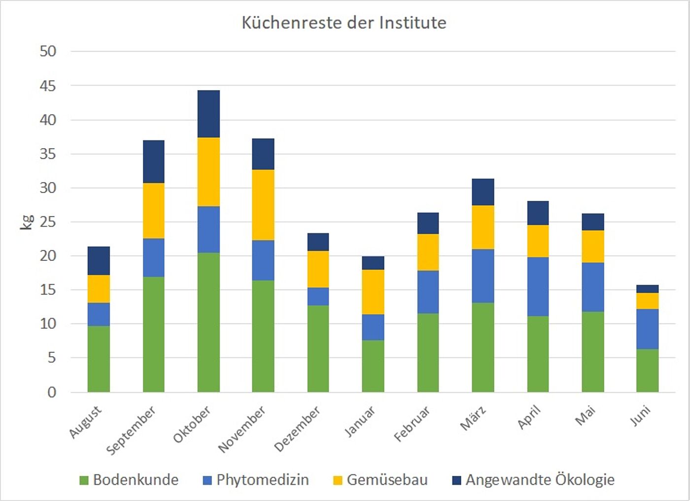 sammelte das Institut für Angewandte Ökologie an vier Institutsküchen auf dem Campus West insgesamt über 300 kg an Küchen- und Kaffeeresten. So konnten fast 9 kg Material pro Jahr und Person verwertet werden, welche ansonsten im Restmüll gelandet wären.