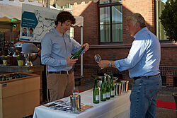 Zuvor hatte der Staatssekretär an einer interessanten Diskussionrunde mit Professorinnen/Professoren des Instituts für Wein- und Getränkewirtschaft (Leitung Prof. Dr. Simone Loose) und Studierenden teilgenommen.