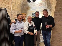 „Es ist eine riesengroße Freude meinen Freund Luigi, der auch Präsident der italienischen Fußballnationalmannschaft der Winzer „11 del Vino“ ist, im Geisenheimer Unikeller mit seinen Weinen und Speisen besonderen Gästen präsentieren zu dürfen. Er hat frische weiße Trüffel als Alba im Piemont mitgebracht und seinen 2018er Riesling aus Cecina in der Toskana. Selbst Stuart Pigott, der einen Tag später zur ProWein Media Summit im Unikeller war, interessierte sich für diesen Wein.“ berichtet Robert Lönarz, der Initiator des Kellers im Müller-Thurgau-Haus ist.