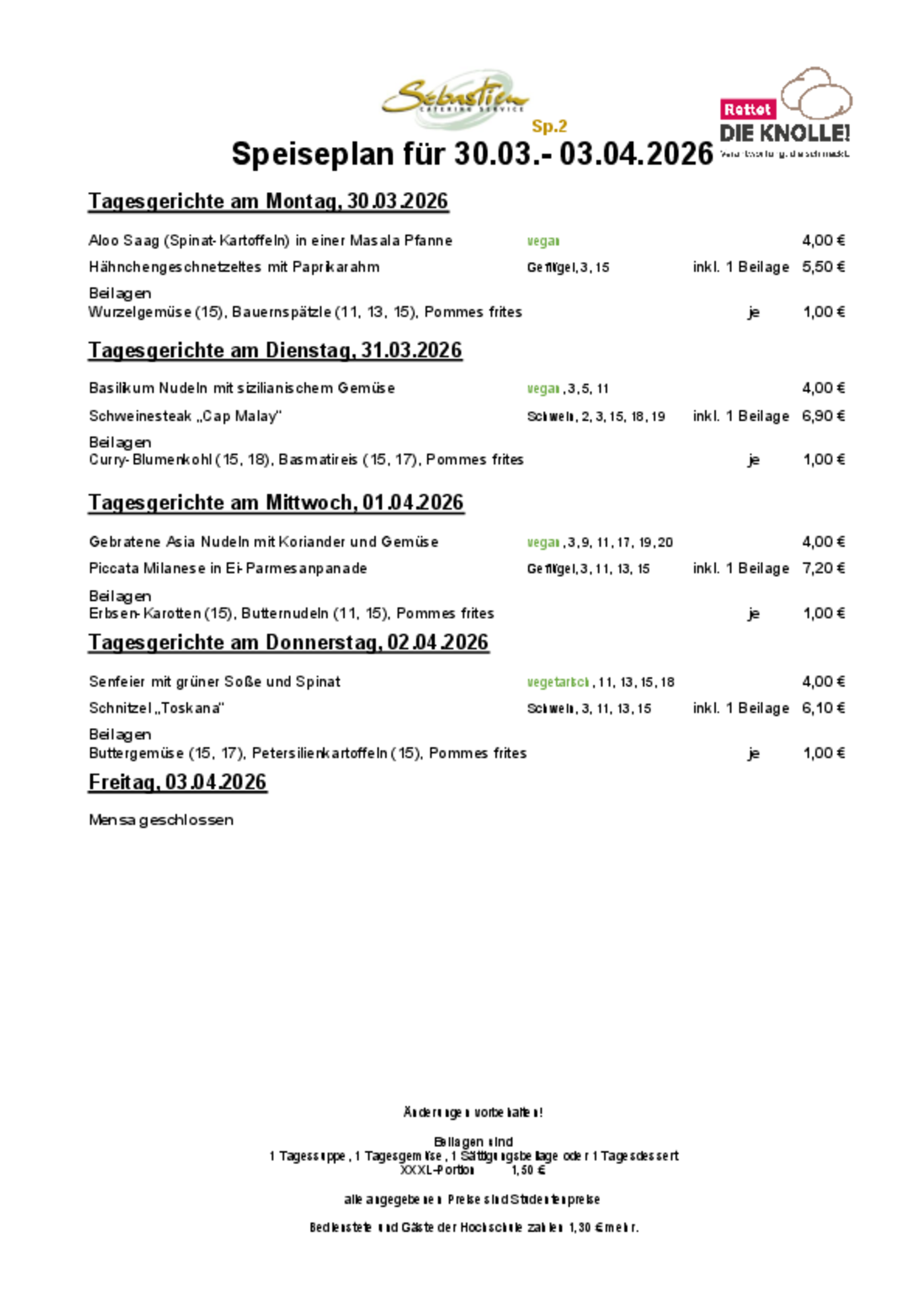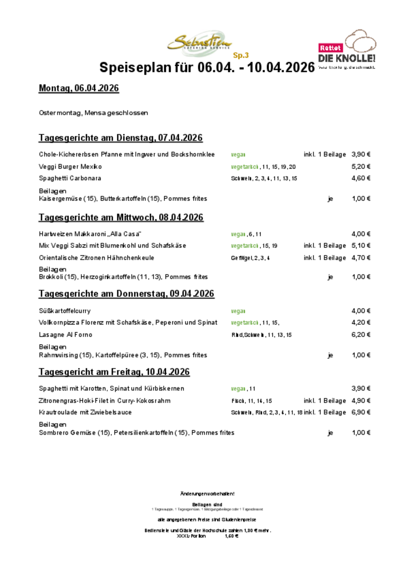 Montag, der 06.04.2026 (Ostermontag), Mensa geschlossen