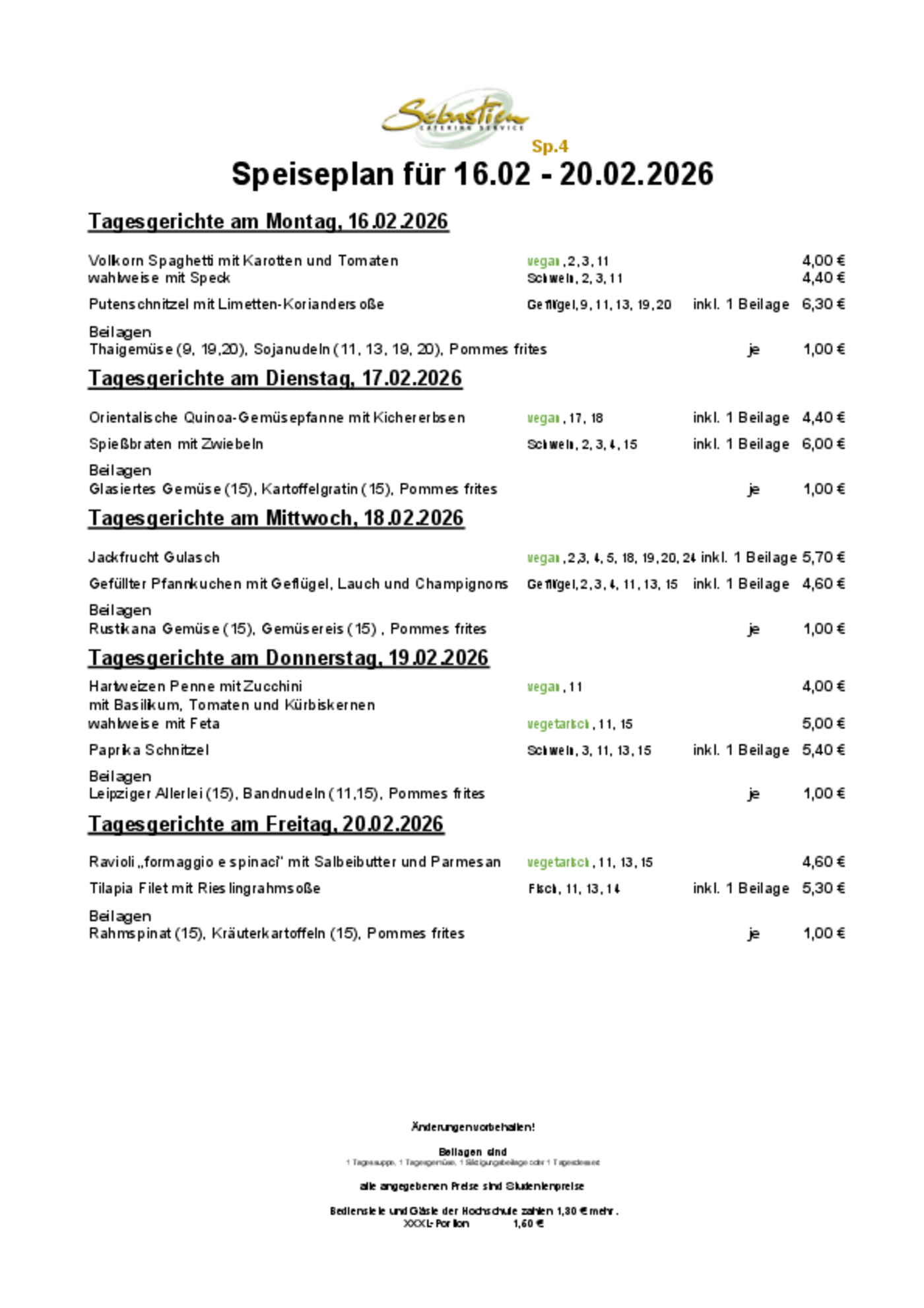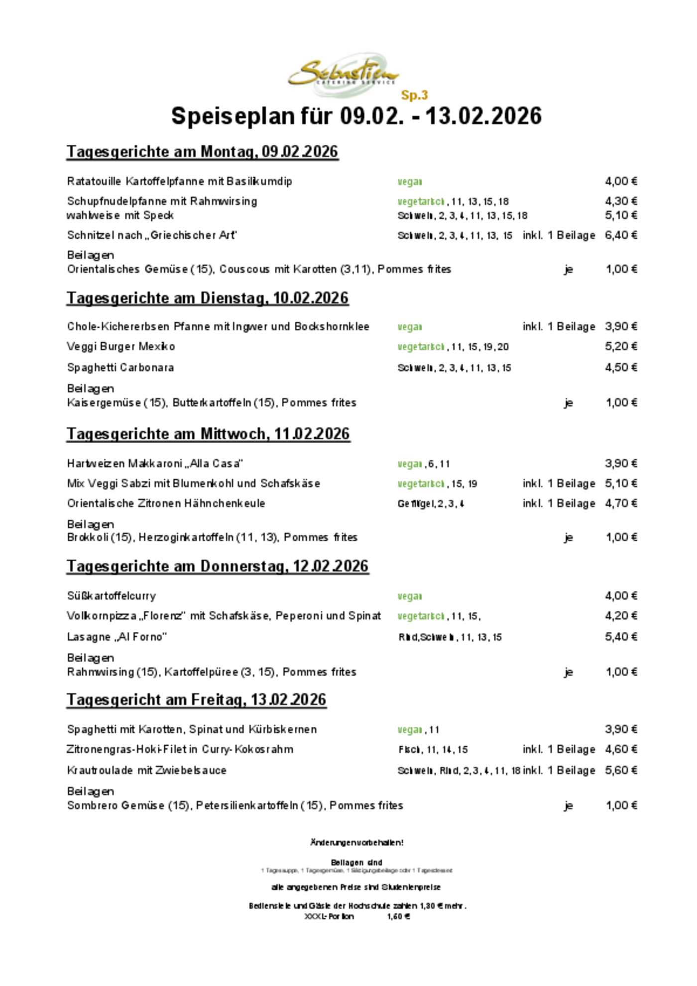 Mensa geöffnet von 08.00 bis 15.00 Uhr Montag bis Donnerstag