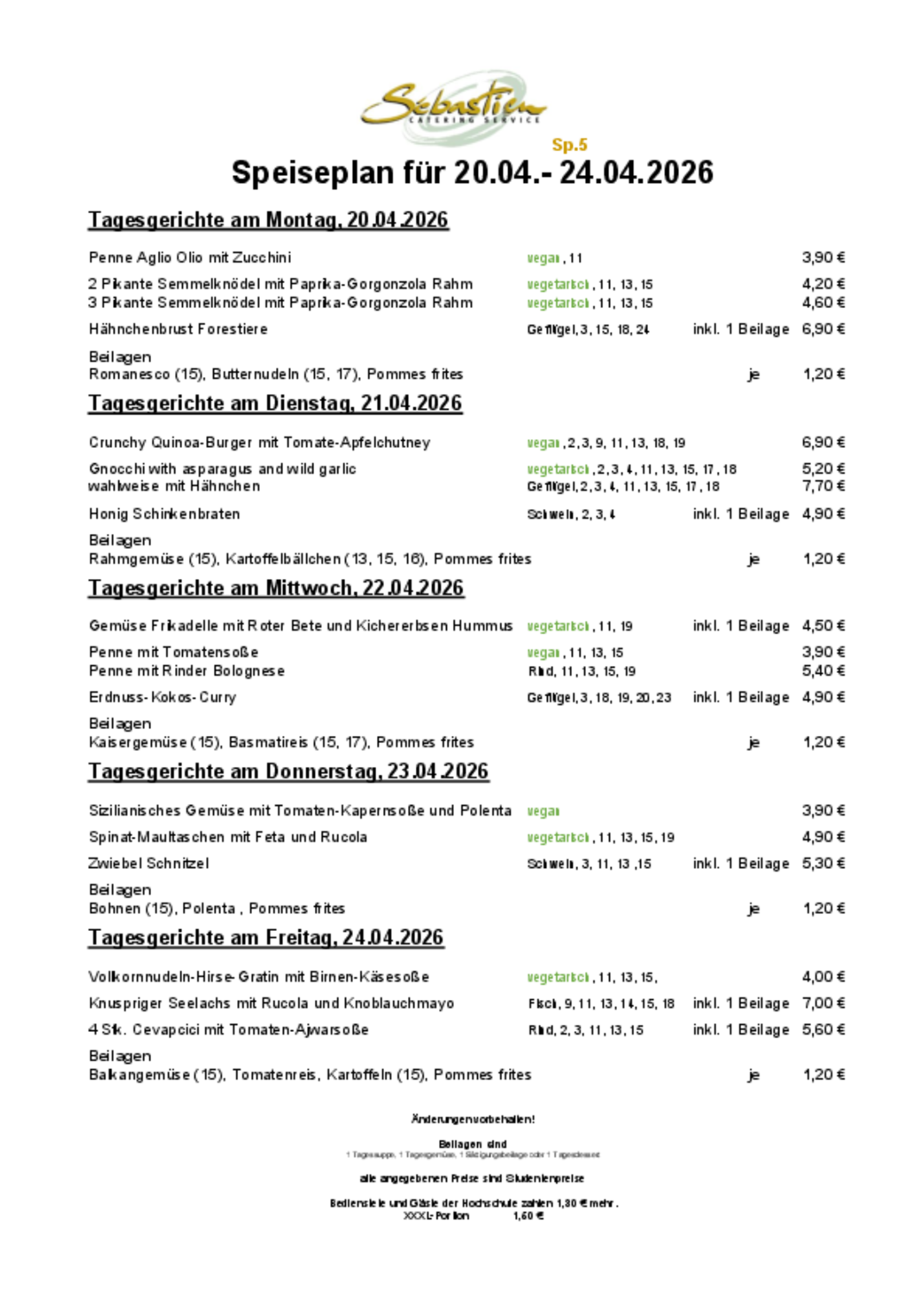 Mensa geöffnet von 08.00 bis 14.00 Uhr