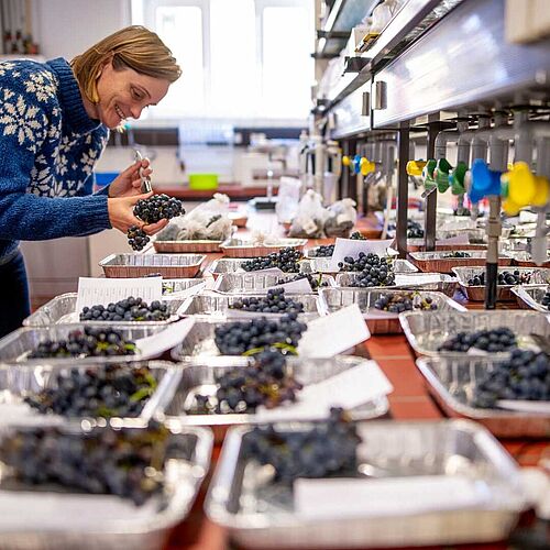 Die Spätburgunder Trauben entstammen einem Versuchsfeld der Lage Geisenheimer Fuchsberg. Die Rebstöcke wurden im Jahr 1997 gepflanzt und werden in den drei unterschiedlichen Anbauformen Spalier (Guyot), Scott Henry und Lyra Erziehung bewirtschaftet. Der Standraum pro Rebstock beträgt für jede Anbauform 2,4m2, wobei lediglich die Zeilenbreite und der Stockabstand variieren: Spalier (2,0m x 1,2m), Scott-Henry (2,8m x 0,85m) und Lyra (3,4m x 0,7m). Alle weinbaulichen Arbeiten werden für die drei Erziehungsformen identisch durchgeführt.