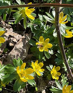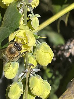 Die Tage werden länger, die Temperaturen steigen. Der Januar war mit einem Tagesdurchschnitt von 3,5°C einer der wämsten seit Aufzeichnung (Deutscher Wetterdienst). Die Bienen haben den Winter so gut wie überstanden. Doch die hohen Temperaturen der letzten Tage und die daraufhin folgenden kühlen Tage machen es den Bienen nicht leicht. Uns treibt die Sorge um, ob die Futtervorräte reichen. Am Dienstag zeigte sich auf dem kompletten Campus der Hochschule Geisenheim reges Treiben. Es gab nicht nur die Honigbiene, die sich an der Mahonie gütlich tat. Nein sie traf dort auch die Blaue Holzbiene. Ein "Brummer" unter den Bienen. Ihre blauschwarzen Flügel schimmern in dem Sonnenlicht. Auch ein Zitronenfalter ließ es sich nicht nehmen eine Runde über den Campus zu drehen. Derzeit blühen die Elfenkrokusse und an vereinzelten Stellen auch noch die Winterlinge. Viel zu lange waren die Temperaturen nicht optimal für die Futtersuche um so besser, dass die Insekten doch noch etwas davon haben, bevor alles verblüht ist.