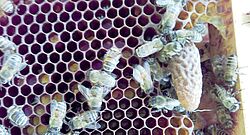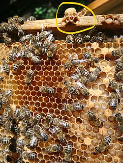 Die Tage werden immer länger und damit ist auch der Höhepunkt des Schwärmens - mit der Sommersonnenwende - bald erreicht. Unser Zadantvolk ist seit Wochen in Schwarmstimmung. Bei jeder Durchsicht zeigen sich Weiselzellen mitten auf der Wabe. Ein deutliches Zeichen für "wir wollen umziehen". Indem man die Weiselzellen bricht, nimmt man dem Volk die Möglichkeit zu Schwärmen. Wird jedoch nur eine übersehen, dann kann es schnell gehen und nur noch die junge Königin mit einer kleineren Gefolgschaft ist im Stock anzutreffen. Das Zandervölkchen hingegen ist total entpannt und baut ab und an ein Spielnäpfchen, mehr aber nicht.