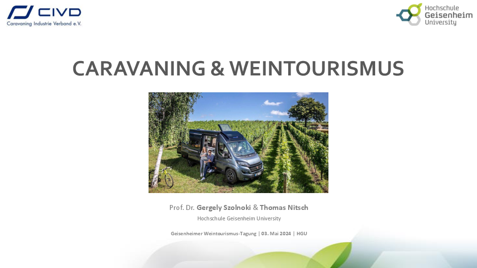 Die Verbindung von Weinbranche und Caravaningtourismus scheint auf den ersten Blick eher ungewöhnlich. Doch nicht wenige Weingüter bieten bereits Wohnmobilstellplätze an und erschließen damit ein neues Geschäftsfeld, das in einem zunehmend wettbewerbsintensiven Markt von großer Bedeutung ist. Um diese Verbindung zwischen beiden Bereichen zu untersuchen, kooperieren das Institut für Wein- und Getränkewirtschaft der Hochschule Geisenheim und der Caravaning Industrie Verband e. V. offiziell.