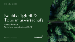 Nachhaltigkeit spielt auch im Weintourismus eine zunehmend große Rolle: Das zeigt die Sustainable Wine Tourism Survey, im Rahmen derer die Hochschule Geisenheim und winetourism.com im November 2021 rund 1.600 Weingüter in über 40 Ländern befragte. Demnach gehen 62 Prozent der Befragten davon aus, dass nachhaltige Weintourismuspraktiken für die Besucherinnen und Besucher schon heute relevant seien. Neben einer effizienteren Energienutzung und langfristigen Nachhaltigkeitsstrategie streben die Betriebe vielfach auch eine engere Zusammenarbeit mit anderen regionalen Akteuren an. Die Ergebnisse der gesamten Studie stehen zum kostenlosen Download zur Verfügung.