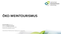 Über 150 Studierende, Forschende, Vertreterinnen und Vertreter der Weintourismusbranche aus Griechenland, Deutschland, Italien, Portugal, Frankreich, Ungarn und anderen Ländern nahmen im Dezember 2021 an einer zweitägigen Hybridkonferenz zu nachhaltigem Weintourismusan der Hochschule Geisenheim teil. Nationale und internationale Gremien wie die OIV, das DWI, das griechische Tourismusministerium und die Deutsch-Griechische Versammlung hielten Impulsreferate, während Best-Practice-Beispiele aus verschiedenen Ländern, die Auswirkungen von Covid19 auf den Weintourismus, die Digitalisierung des Sektors und innovative Strategien im Mittelpunkt der 14 Vorträge standen.