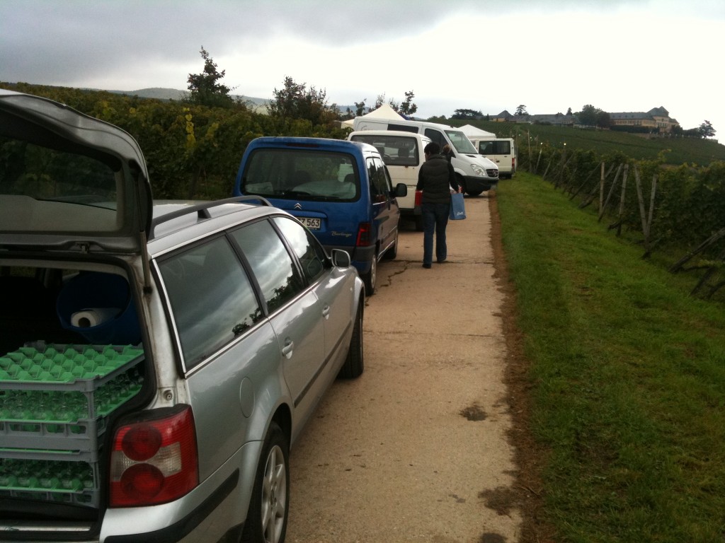 Zu den Füssen der Besucher fällt steil der Geisenheimer Kläuserweg ins Tal, daran anschliessend die Johannisberger Klaus und der Schlossberg im Osten. Das alles im Blick und im Glas der passende Wein, der kombinierte Genuß von Wein und Natur macht Herkunft erfahrbar. Da auch Rüdesheim in die eine und Winkel in die andere Richtung zu sehen sind, wird es bei 20 Betrieben auch Weine diesen Ursprungs geben.