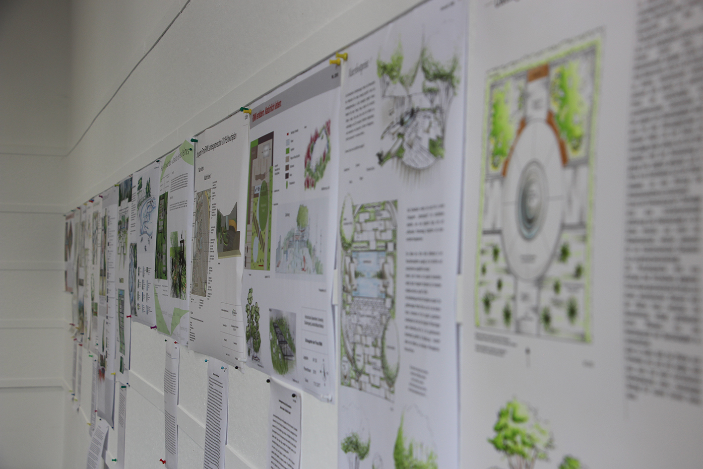 Den größten Eindruck bei der Jury hinterließ der Entwurf von Janka Jung und Adrian Keil mit dem Titel „Außen Stein, innen grün“. Adrian hatte seine Kommilitonin von der Wettbewerbsteilnahme überzeugt – mit dem 1. Platz und dem Preisgeld von 500 Euro hatten beide aber „absolut nicht gerechnet“. Die besondere Herausforderung sei die kleine Planungsfläche von zehn mal zehn Metern gewesen, sagt Adrian, der vorher Umweltingenieurwissenschaften studiert hatte. Der Wechsel in die Landschaftsarchitektur sei „ein ziemlich krasser Switch“ gewesen, die geforderte Kreativität etwas ganz Neues. Aber das Studium macht beiden Gewinnern auch nach drei Semestern noch viel Spaß.