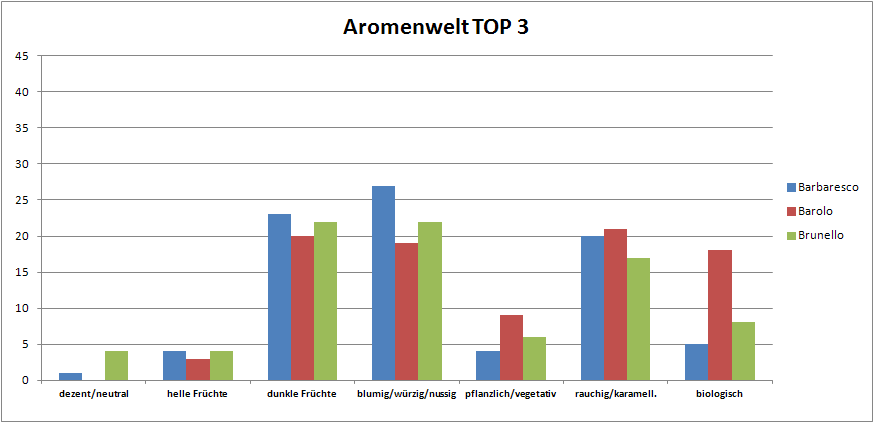 Oder nach dem Namensursprung Sanguis Jovis, „Blut Jupiters“. Heute ist Sangiovese eine der wichtigsten Rebsorten Italiens und die TOP 13 weltweit. Sie leidet unter stark steigender Nachfrage, da Preis und Qualität nicht die gleiche Richtung einschlagen. Die Rebsorte hat viele Gesichter. Sie ist in den Super Tuscans Hauptbestandteil und mit min. 80% im Chianti vertreten. Sangiovese liefert normalerweise einen trockenen, leicht tanninhaltigen Wein mit Blumen- und Kirscharomen und einer leichten Bitternote. Im hochreifen Zustand entwickelt die Sorte zudem eine Würze und Pflaumenaromen. Nach einem Fassausbau können rauchige und schokoladene Reflexe dazukommen.