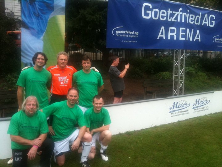14 verschiedene Wiesbadener Firmen, Berufsgruppen und Initiativen formieren sich zu Fußballmannschaften und treten für einen guten Zweck von 13.00 – 17.00 Uhr in der Goetzfried AG Arena auf dem Kranzplatz gegeneinander an. Dabei sind zum Beispiel Mannschaften von Kaufhof, Dow Corning, Delta Lloyd, Zwerg Nase e.V. und natürlich der Goetzfried AG. Der Eintritt zum Fußballturnier ist frei.
