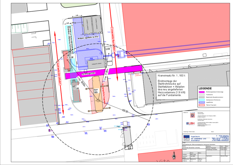 Die Anlieferung und Aufstellung des Krans erfolgt voraussichtlich am 06.10., die Ein- und Ausfahrt ist über die Nothgottesstraße und den GTZ-Anlieferhof geplant.