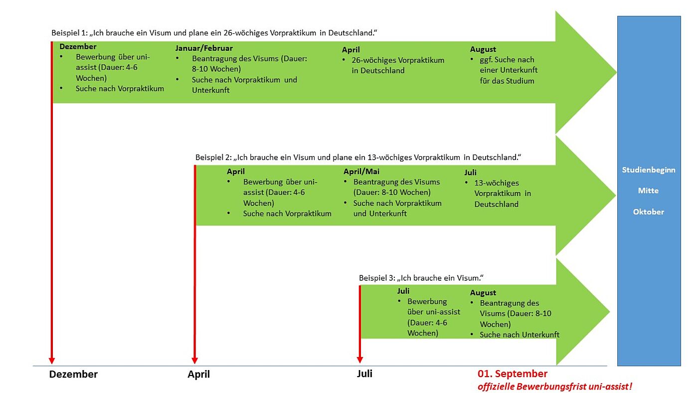 Die Organisation des Vorpraktikums liegt in Ihrer Verantwortung. Beginnen Sie rechtzeitig mit dem Vorpraktikum und achten Sie darauf, dass die Inhalte und Dauer Ihres Vorpraktikums mit den Anforderungen zum Vorpraktikum des gewünschten Studienganges übereinstimmen.