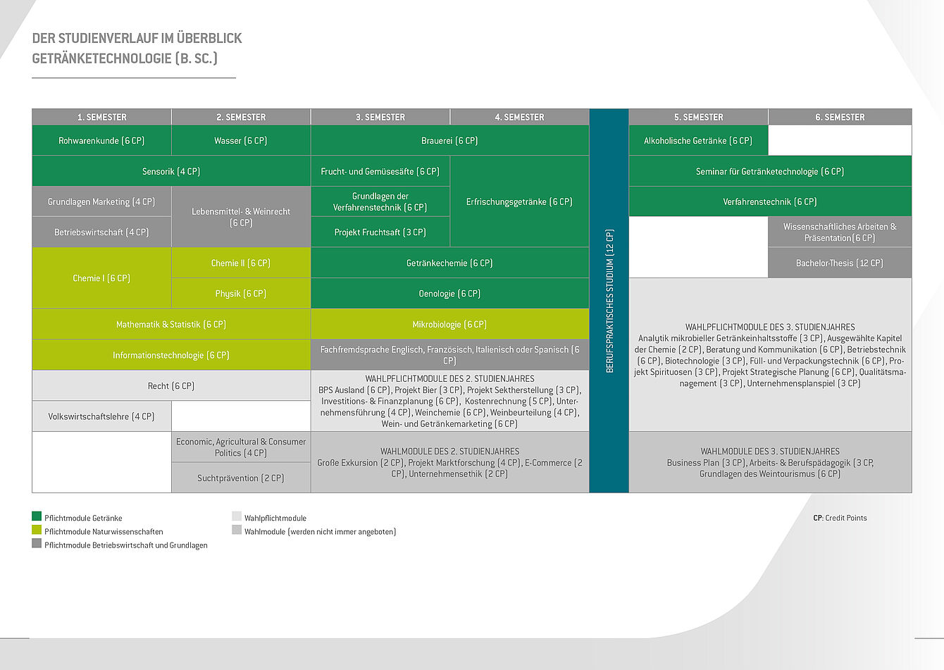 | Weiterführendes Studium | Getränketechnologie (M.Sc.), Lebensmittelsicherheit (M.Sc.), Oenologie (M.Sc.) |