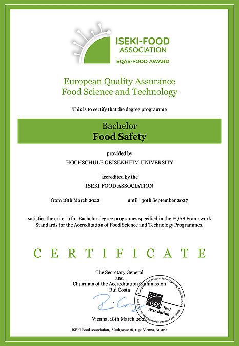 | Weiterführendes Studium | Lebensmittelsicherheit (M.Sc.) |