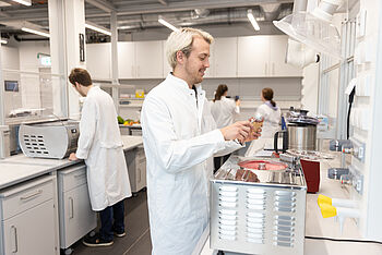 Im Studiengang Lebensmittelsicherheit bündeln die staatliche Hochschule Geisenheim und die private Hochschule Fresenius (Idstein) ihre Kompetenzen, um dich optimal auszubilden. Während des Studiums lernst du, wie Lebensmittel sicher und genießbar bleiben. Du führst Analysen in modern ausgestatteten Laboren durch und stellst selbst Produkte wie Milch, Öl, Backwaren oder Bier her. Zudem bekommst du Einblicke ins Qualitätsmanagement und Lebensmittelrecht.